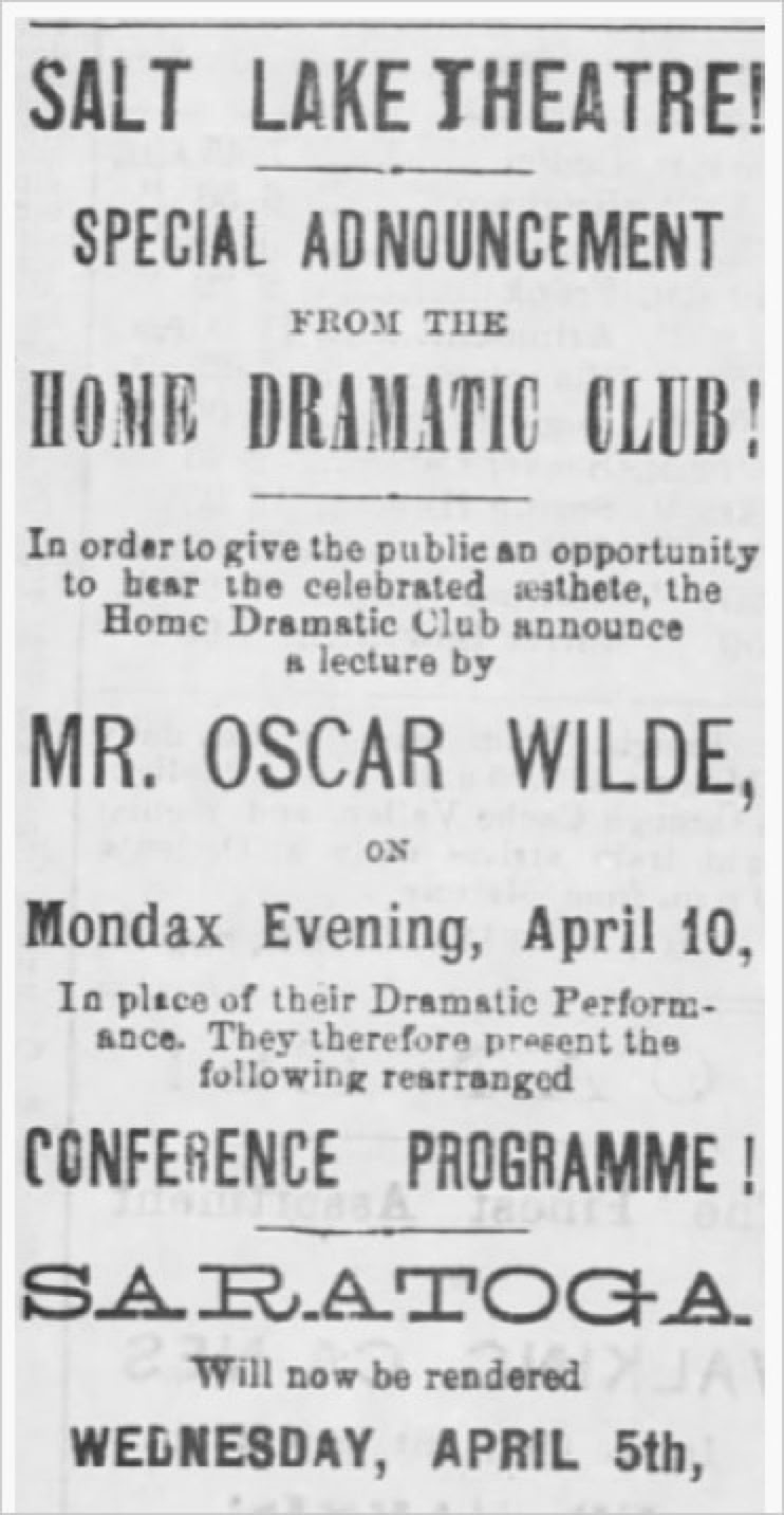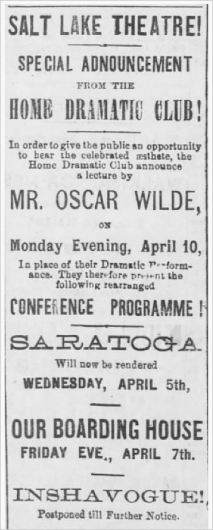 ‍Wilde referred sarcastically to the Mormon practice of polygamy. He wrote from Kansas City on April 17: