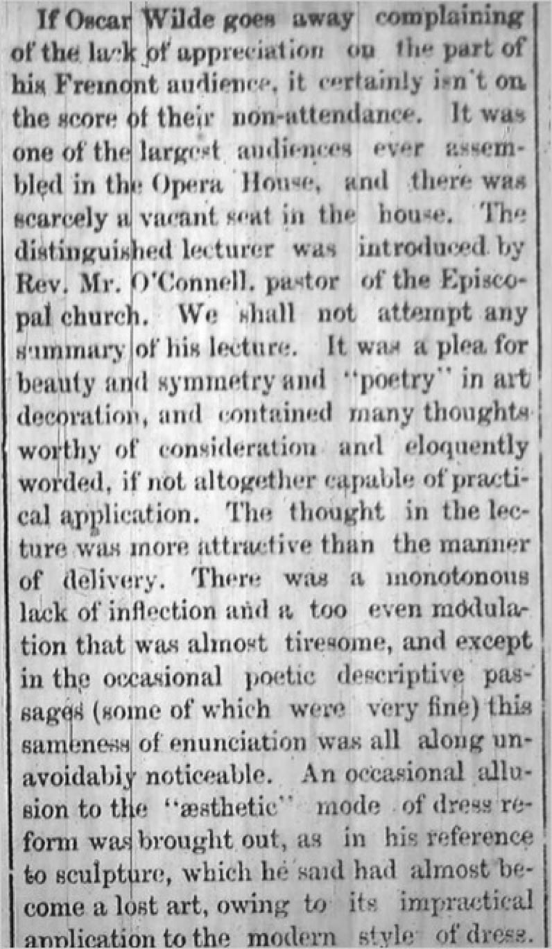 ‍Book: Robert A Schanke, Fremont’s Love Opera House, Nebraska History 55 (1984): 220-253 cites the Fremont Tri-Weekly Tribune, April, 1882 (no date given)