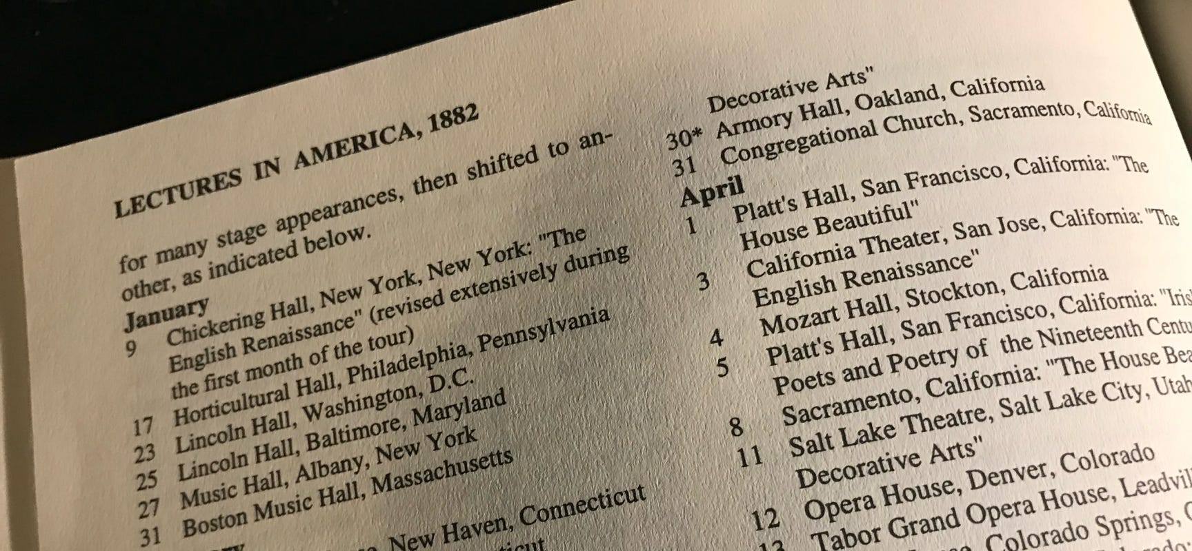 There have been five previous approximations of Wilde’s lecture tour published in the following works: