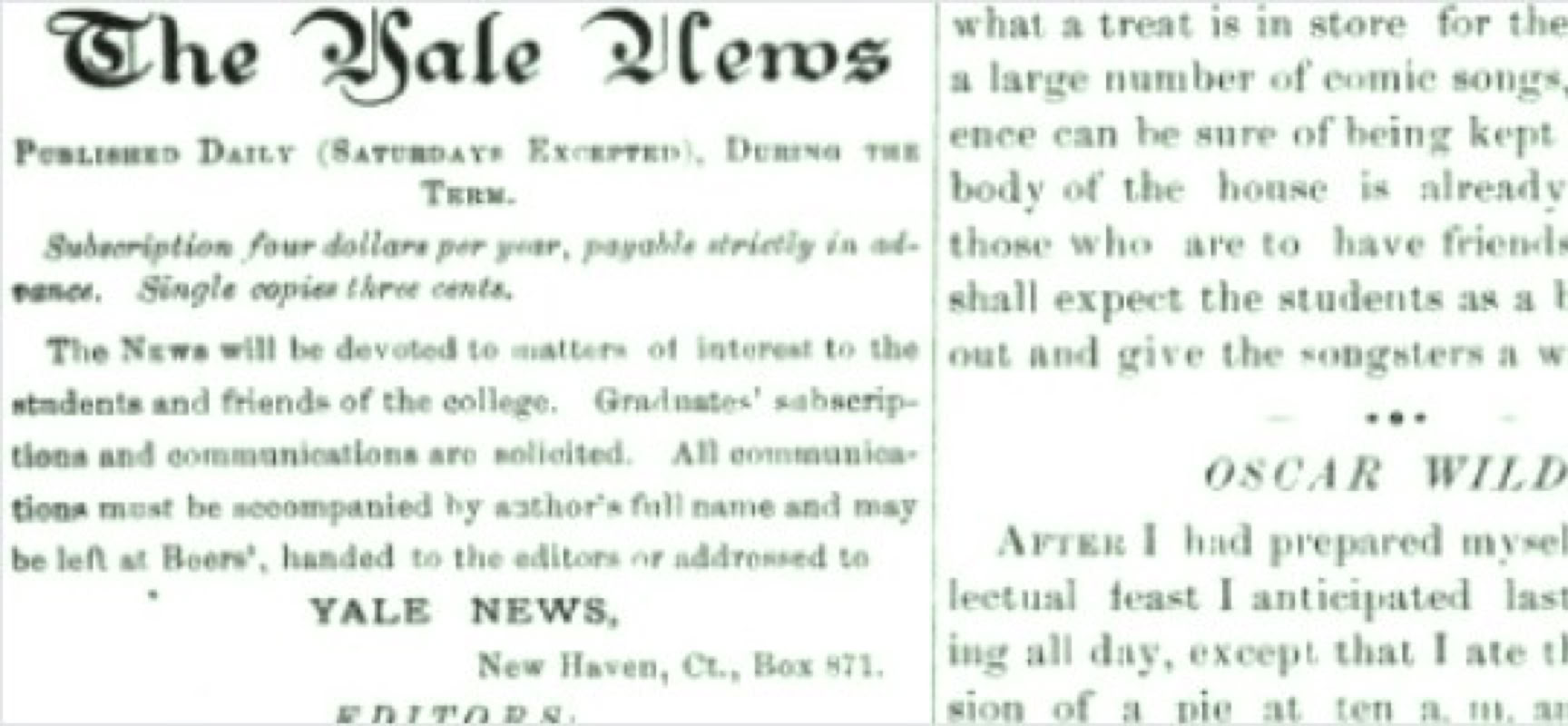 Oscar Wilde in New Haven, The New York Times, Feb 2, 1882. Oscar Wilde
