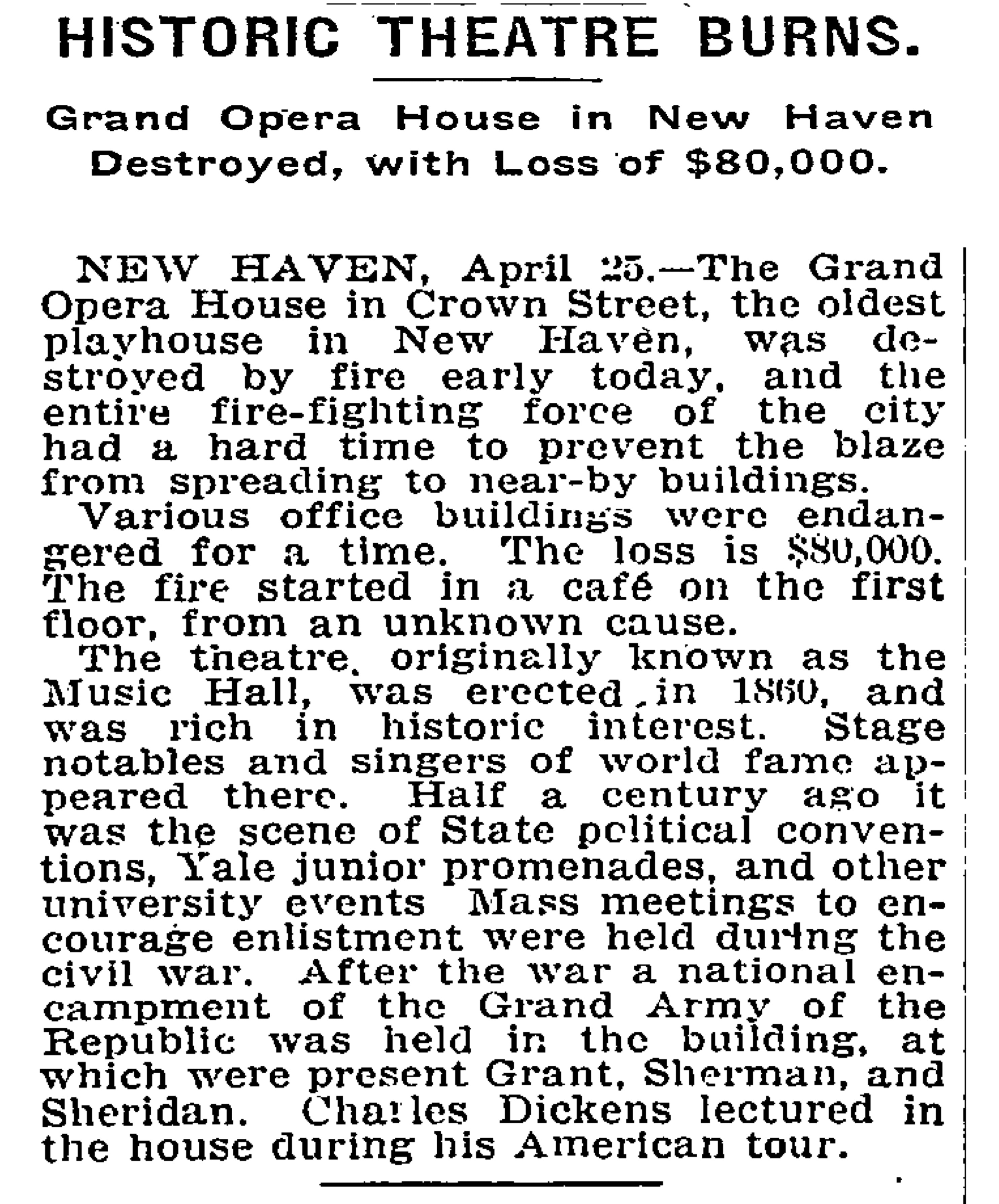 Grand Opera House * Crown Street, nr. Church Street, New Haven, CT. New Haven Theatre. Oscar Wilde