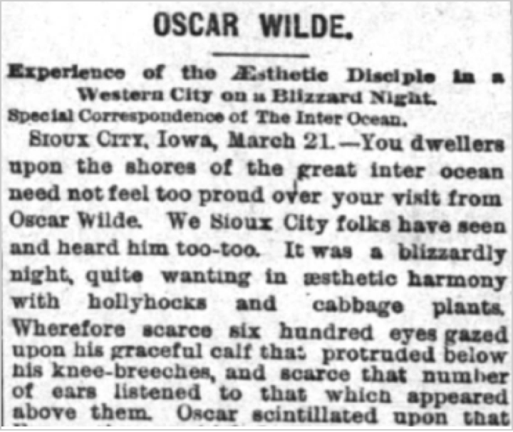 L&S's account is interspersed with verbatim quotes taken from the Sioux City Journal [1,2], and the references to Wilde's lecture venue and accommodation clearly read as taken from the same source. Thus the verification can be deemed as the reporting of a primary source.