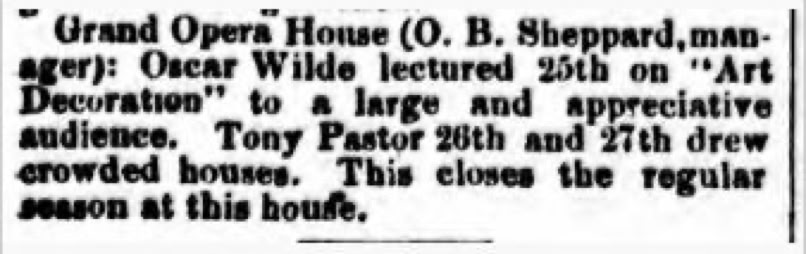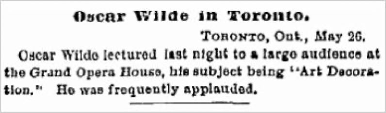 Quoted in Oscar Wilde in Canada, Kevin O'Brien, 1882