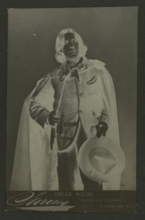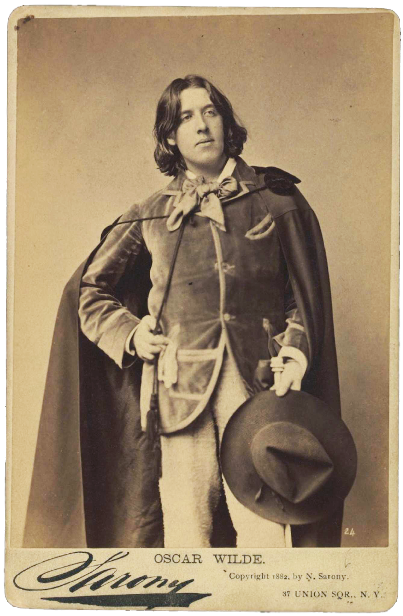Oscar standing in exactly the same place in the Sarony’s studio in which Sarah Bernhardt had stood earlier in 1880, and Lillie Langtry later in 1882.