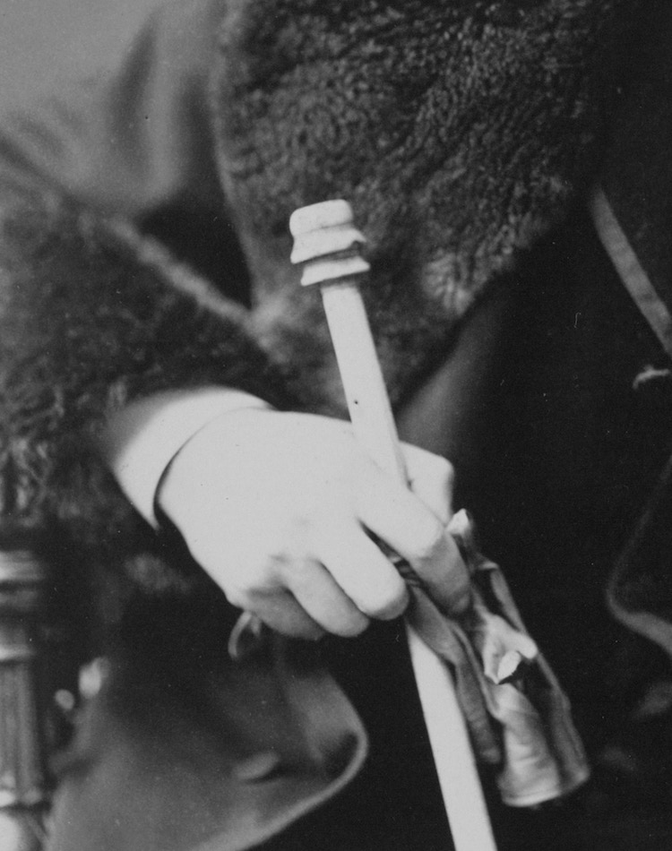 Wilde changed jacket and tie to complete his evening dress. On his right hand Wilde has a seal ring (used for sealing wax impressions).