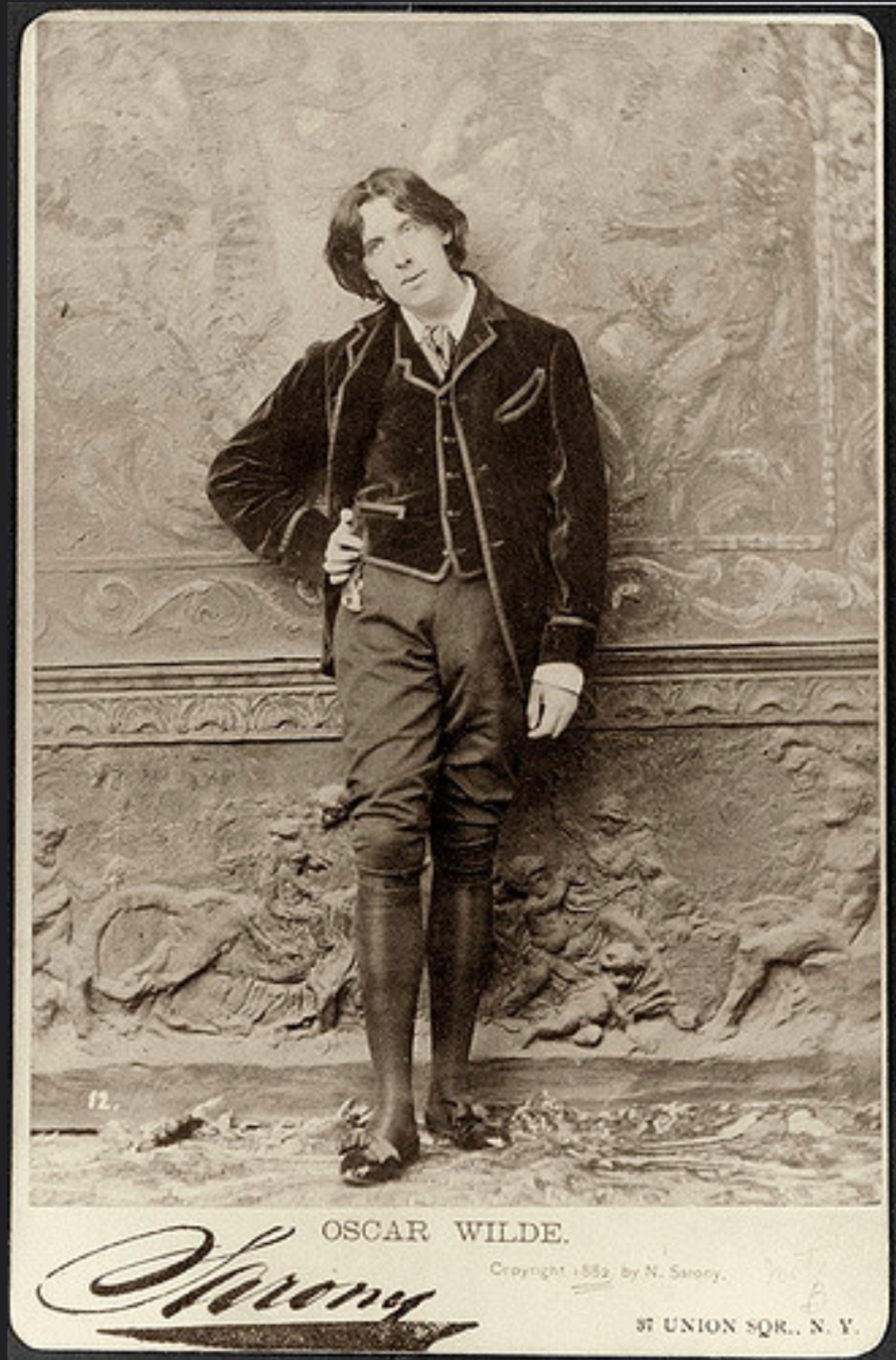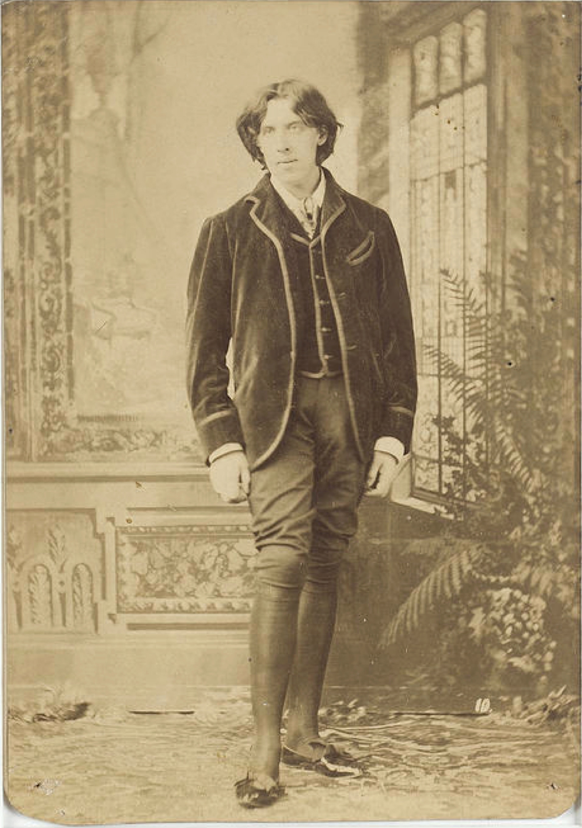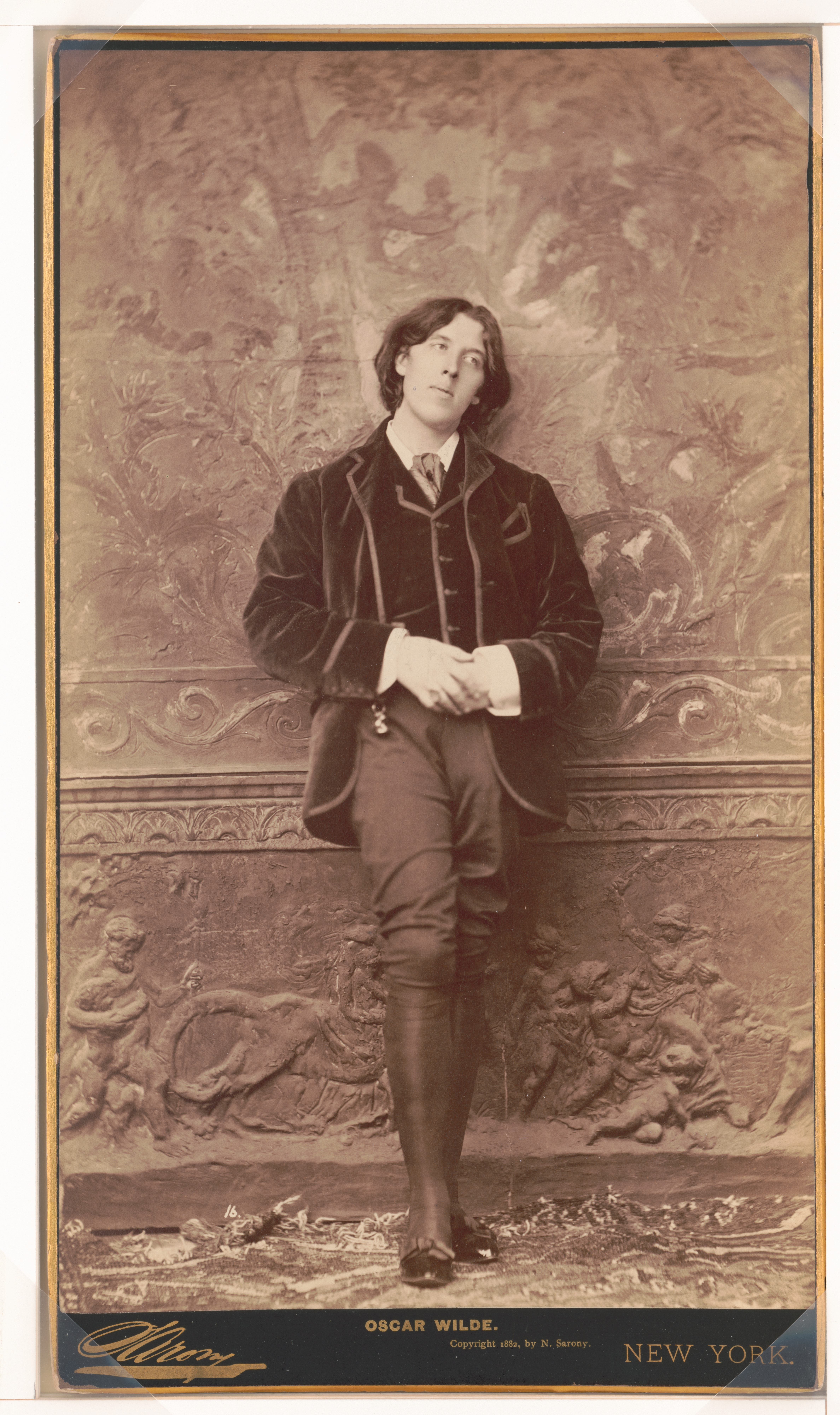 The item hanging below Wilde’s vest is a bunch of seals (used for sealing wax impressions). Wilde later said that waistcoats will show whether a man can admire poetry or not.